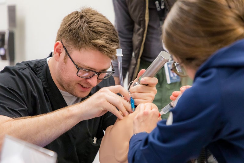 Inside simulation labs, our students learn to start IVs, insert breathing tubes, check pulses, interpret heart monitors and respond to critical changes in patient status, often in team-based settings that reflect real emergency department workflows. With multi-angle video recording and live feedback, students can reflect on performance and continuously improve.