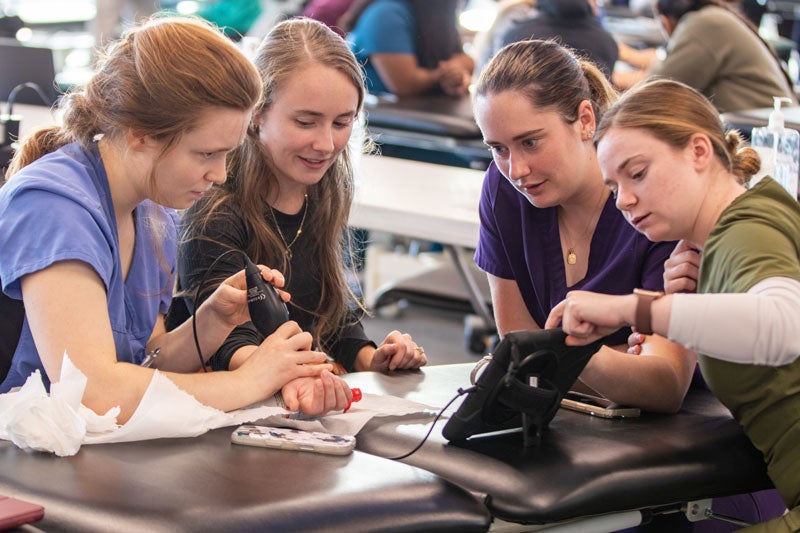 Our simulation labs feature everything from high-fidelity, responsive manikins that breathe, sweat and bleed to trained patient actors who provide real-time feedback on bedside manner. With faculty-guided debriefs, AI-powered ultrasound support and a curriculum that spans simulation across all four years, students graduate with clinical instincts already well-developed.